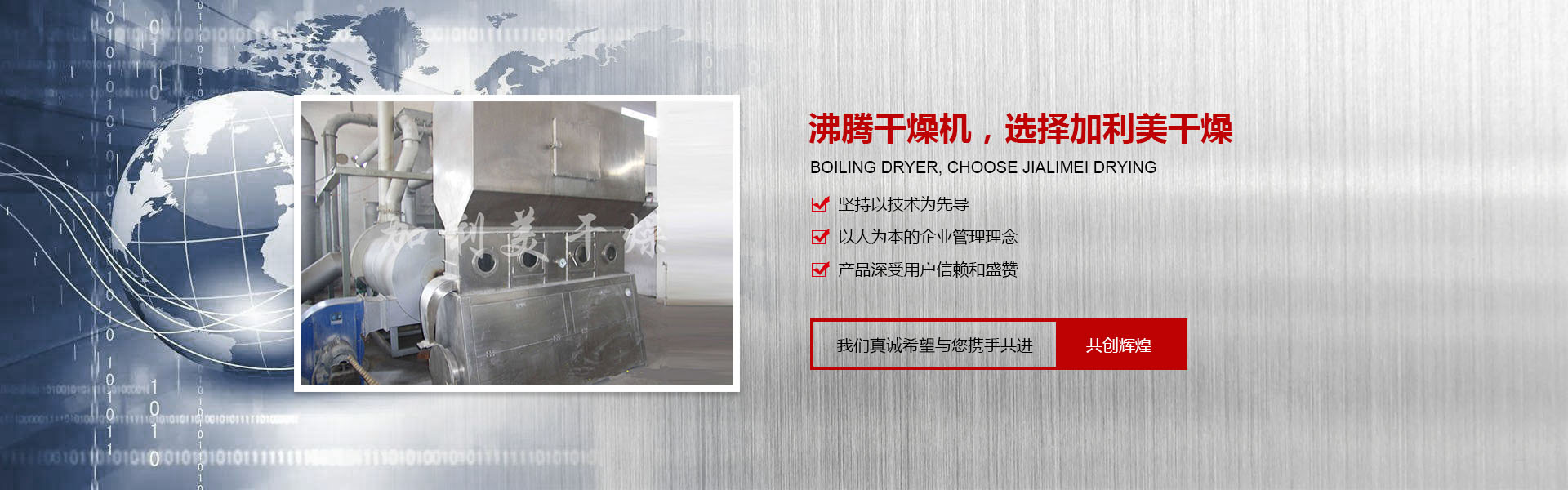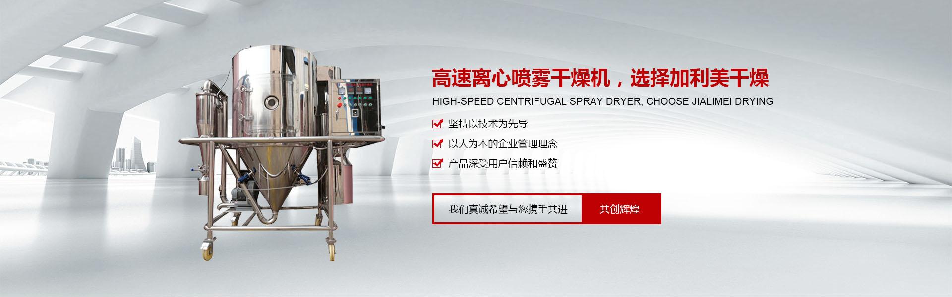 - 常州市加利美干燥設(shè)備有限公司是從事噴霧干燥機(jī),閃蒸干燥機(jī),雞精生產(chǎn)線和制粒機(jī)械的研究、開發(fā)及制造的專業(yè)性廠家,是目 前國內(nèi)生產(chǎn)干燥設(shè)備品種較多、規(guī)格較全的企業(yè)。 我公司吸收國內(nèi)外的先進(jìn)技術(shù)與經(jīng)驗(yàn),嚴(yán)格按國家GMP的要求設(shè)計(jì)、開發(fā)、生產(chǎn)、安裝和服務(wù)于一體,同時(shí)嚴(yán)格按照ISO9001國際質(zhì)量體系標(biāo)準(zhǔn)實(shí)施,確保了產(chǎn)品質(zhì)量。在干燥設(shè)備的開發(fā)、研究中不斷地創(chuàng)新及改造,設(shè)計(jì)制造了一系列工藝進(jìn)步且節(jié)能的產(chǎn)品。